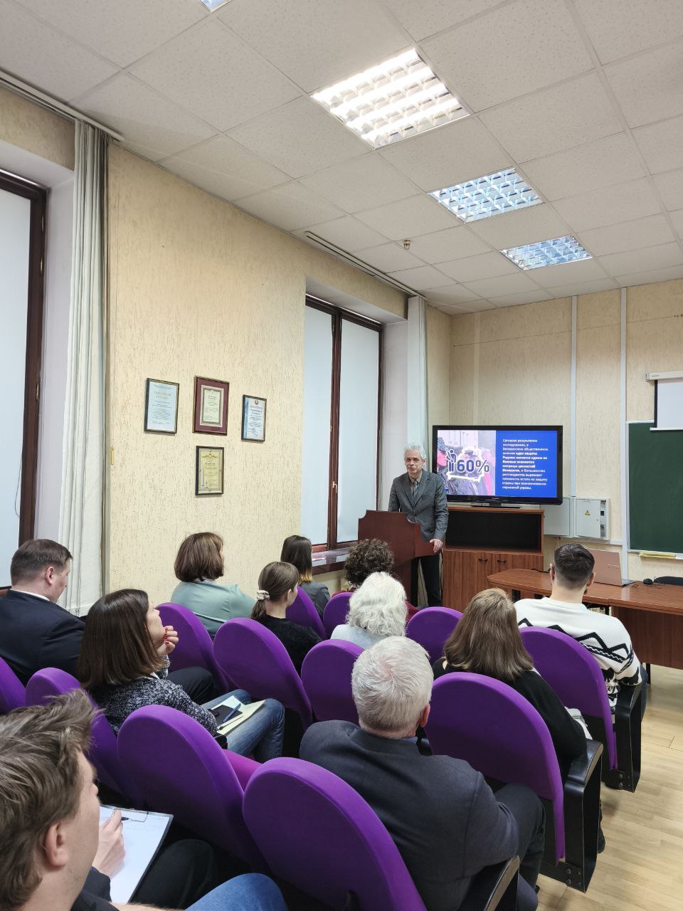 В этот день сотрудники и студенты факультета также имели уникальную возможность пообщаться с приглашенным в БГУ почетным гостем, судьей Конституционного суда Республики Беларусь Еленой Семашко, которая поделилась своими взглядами на текущую военно-политическую обстановку.