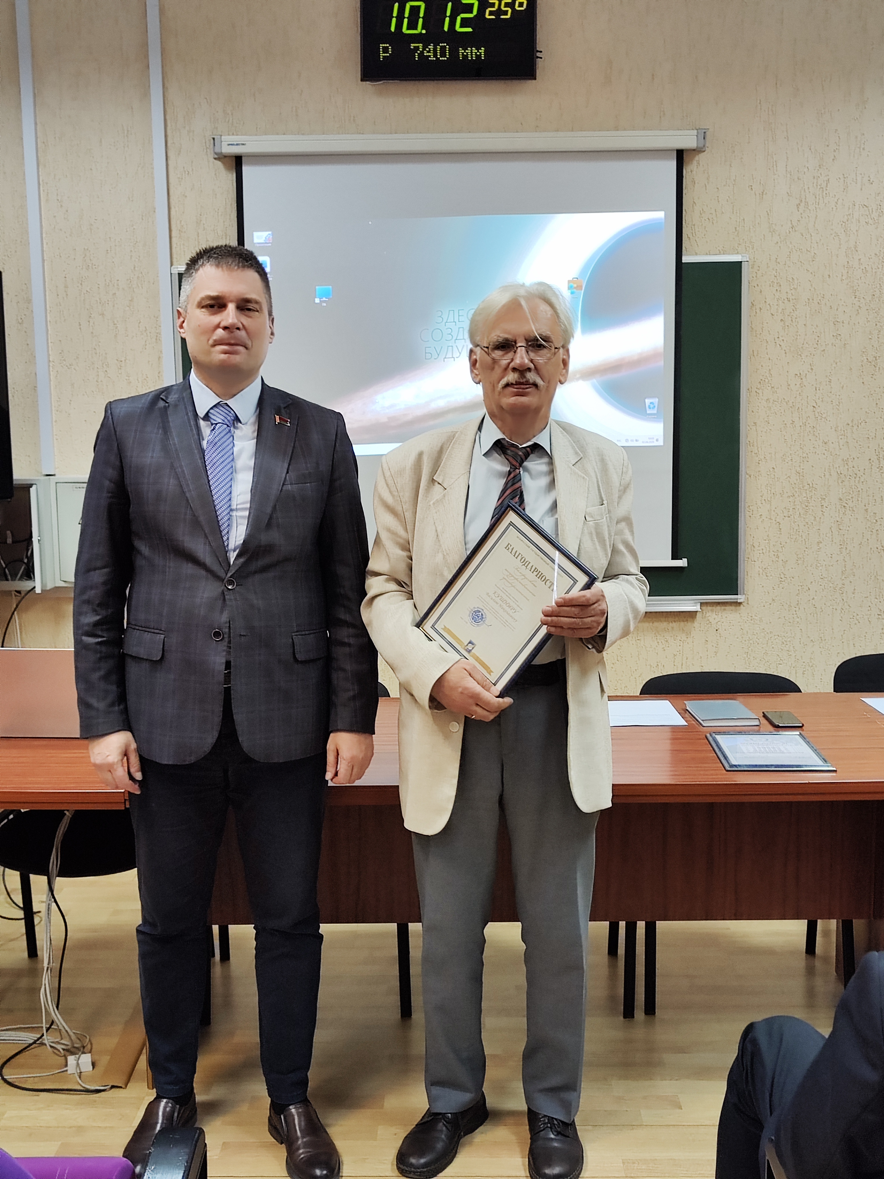 Благодарность Белорусского государственного университета объявлена профессору кафедры теоретической физики и астрофизики Кушниру Василию Николаевичу за многолетнюю плодотворную научно-педагогическую деятельность по подготовке высококвалифицированных специалистов и в связи с 70-летием.