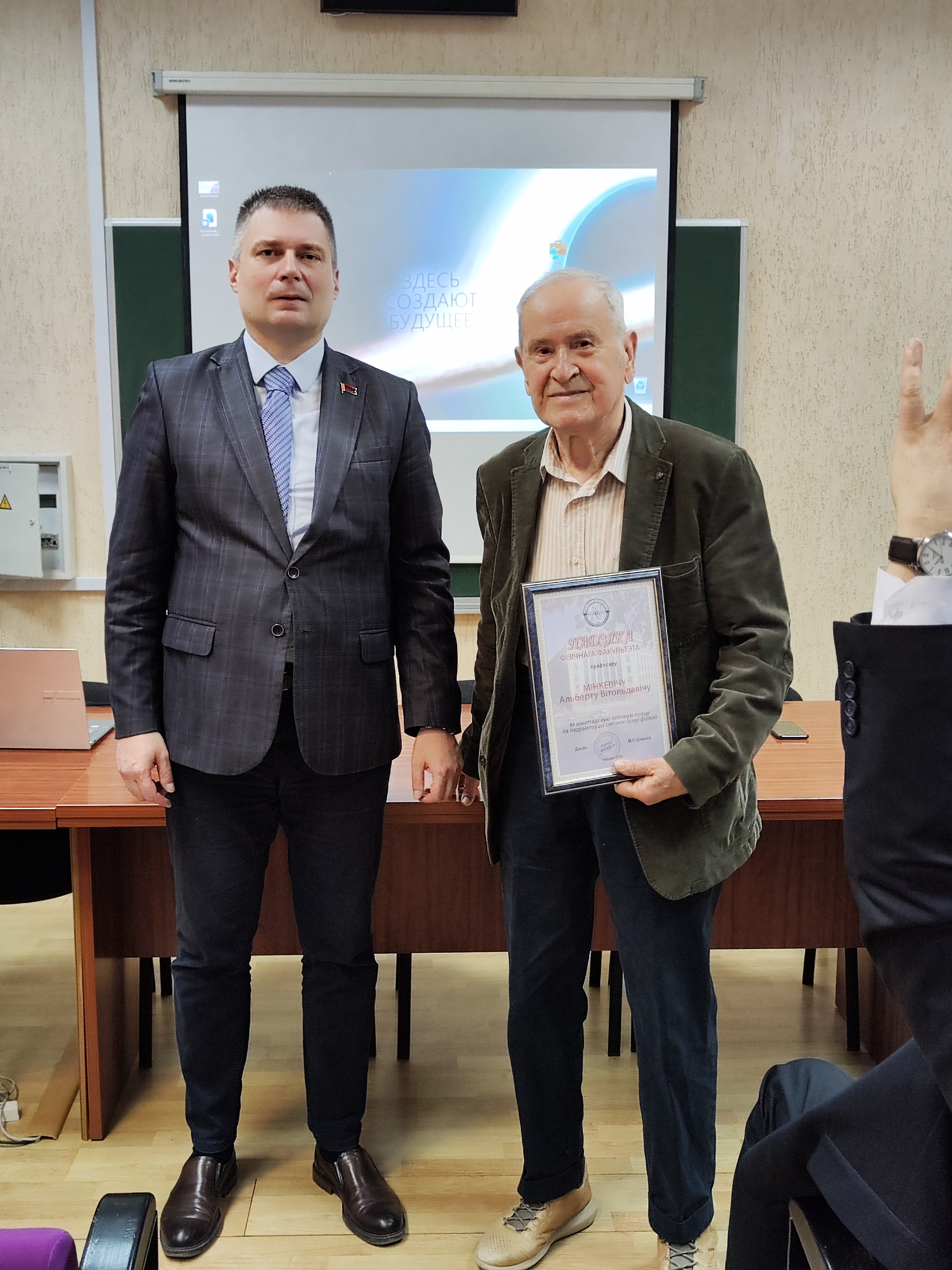 Благодарность физического факультета объявлена профессору Минкевичу Альберту Витольдовичу за многолетнюю плодотворную работу по подготовке специалистов-физиков.