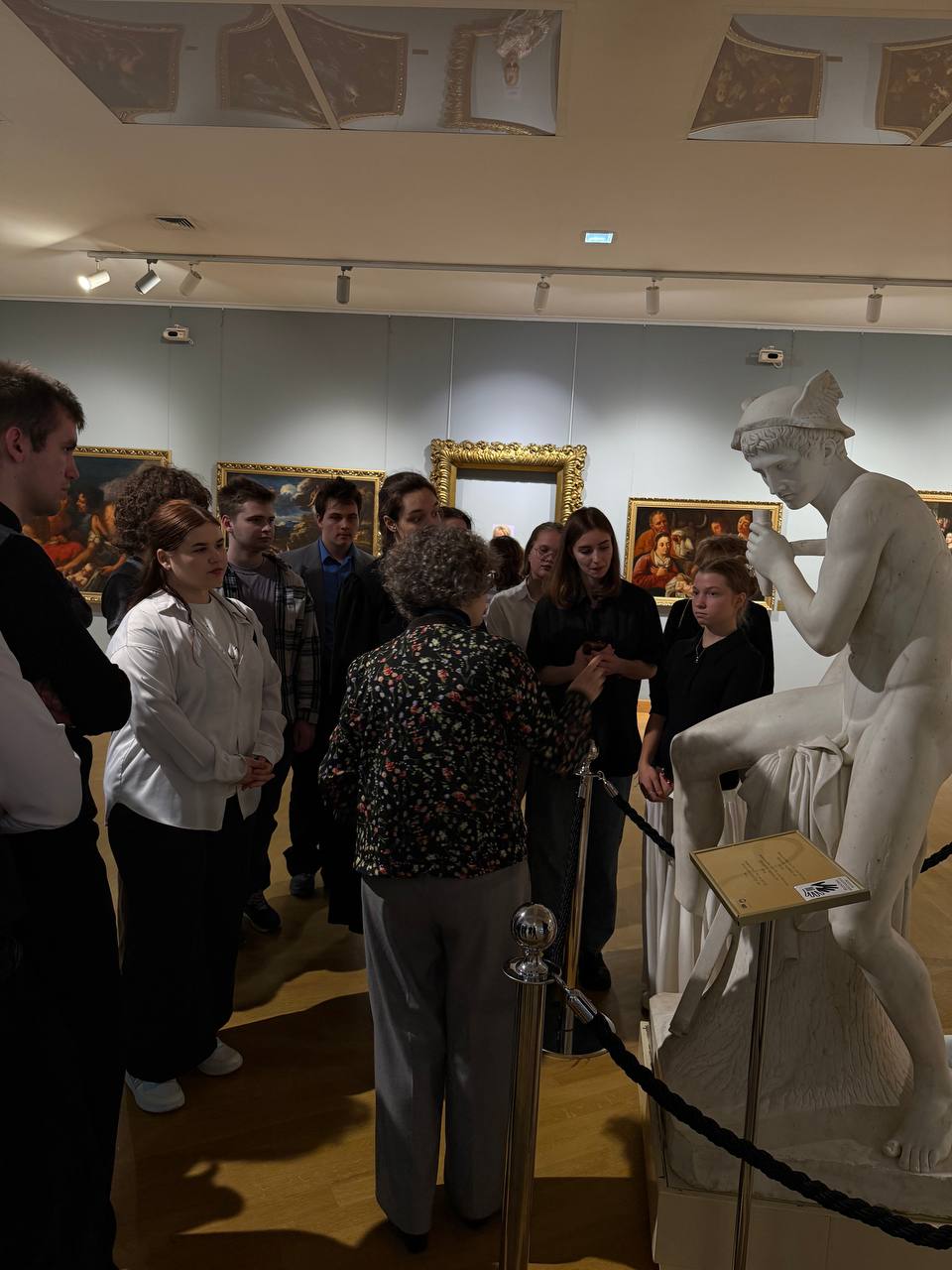 На экскурсии студентам рассказали о мифологическом жанре в произведениях живописи и скульптуры русских и западноевропейских мастеров, представленных в экспозиции музея. Увлекательные легенды о решительных героях, мифических существах и прекрасных богинях погрузили слушателей в атмосферу античности.