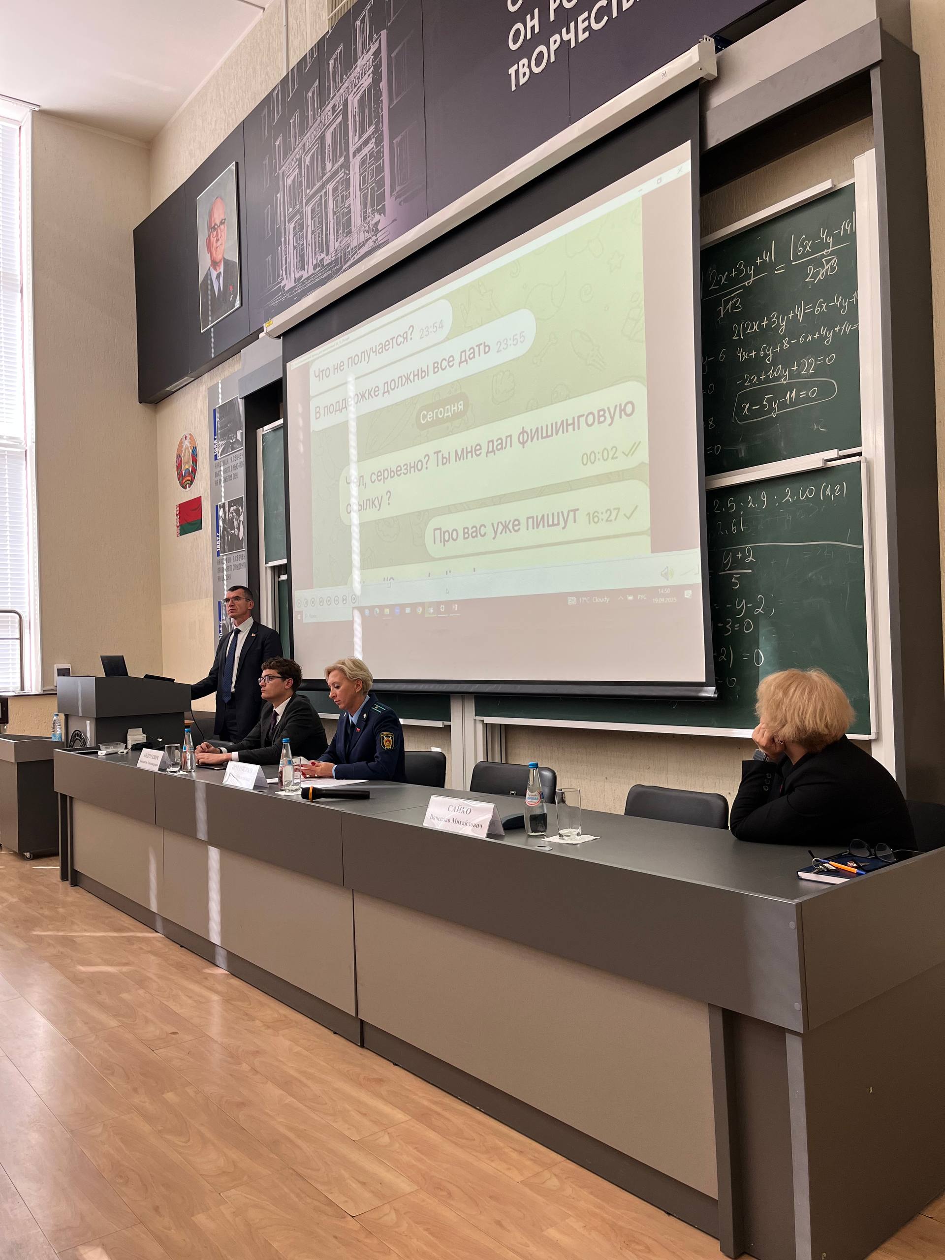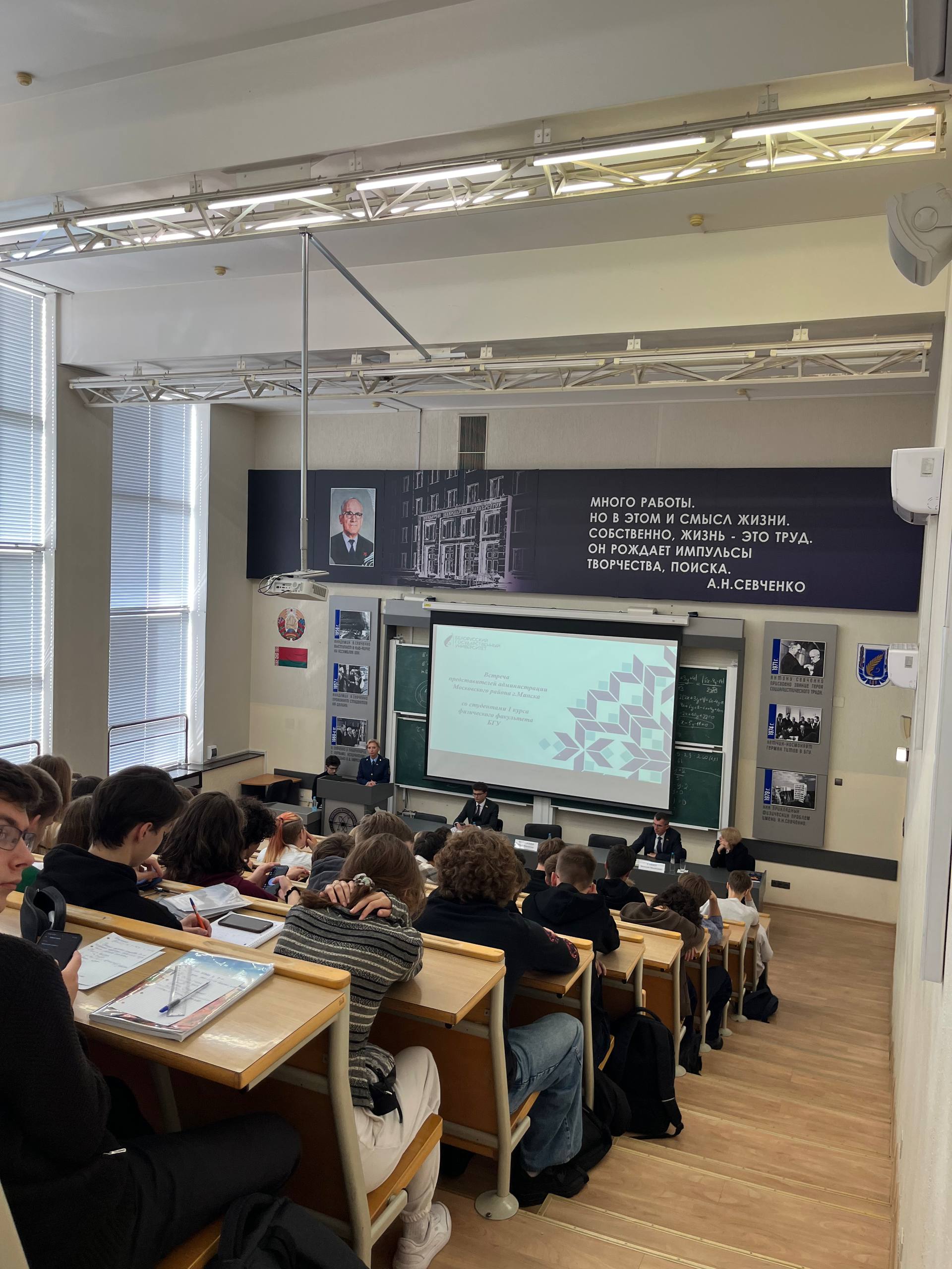 19 сентября на физическом факультете прошла важная встреча студентов первого курса с представителями администрации Московского района города Минска. Мероприятие было посвящено обсуждению вопросов социально‑экономического развития района, реализации молодежных инициатив, профилактики противоправного поведения и новых вызовов, связанных с вовлечением молодежи в экстремистские и деструктивные организации.