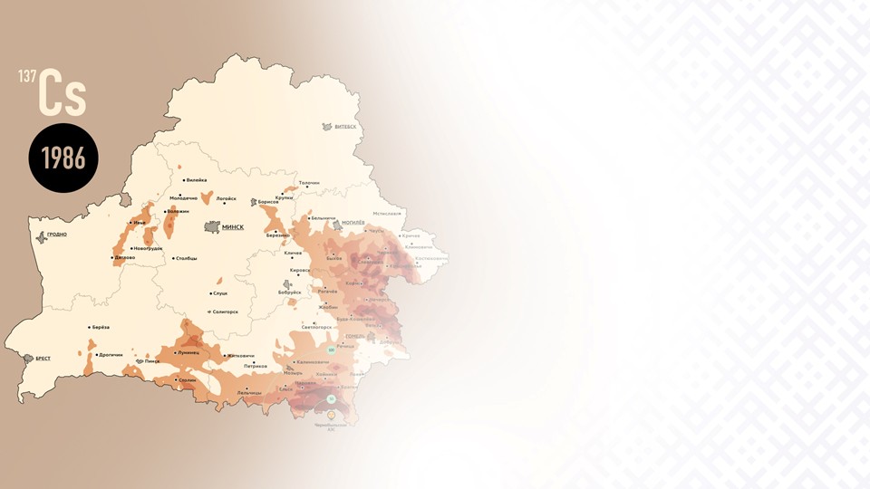 Загрязнение территории Беларуси не было равномерным. На его характер повлияли в том числе особенности метеорологических условий с 26 апреля по 10 мая 1986 года. В результате в Беларуси выделилось несколько основных пятен. Первое – 30-километровая зона вокруг станции, где уровни загрязнения почвы цезием-137 были чрезвычайно высоки. Затем так называемый северо-западный след, к которому относятся южная и юго-западная часть Гомельской области, центральные части Брестской, Гродненской и Минской областей. Уровни загрязнения в этом следе существенно ниже, чем в ближней зоне Чернобыльской АЭС. Третье пятно находилось на севере Гомельской и центральной части Могилевской областей.